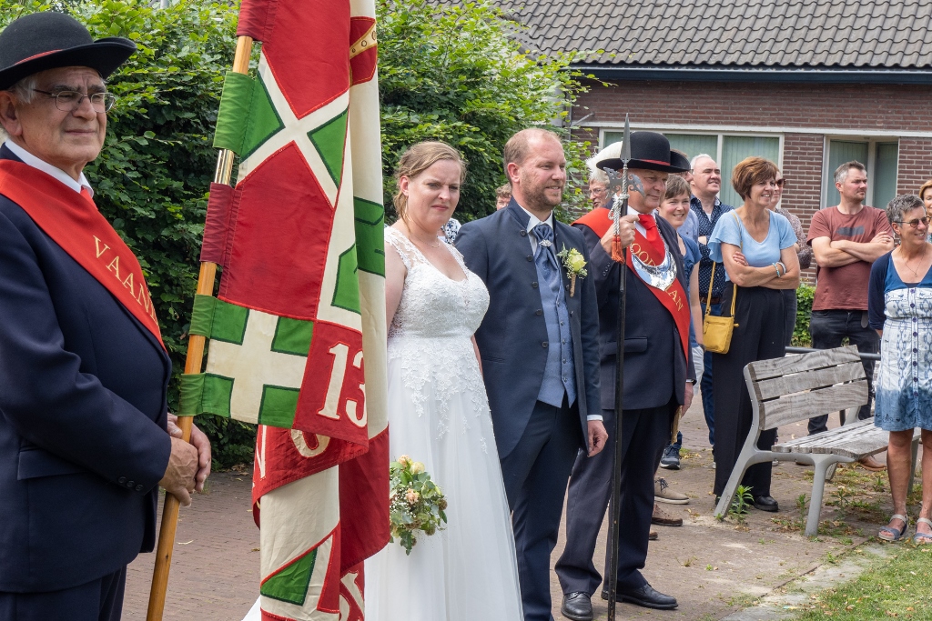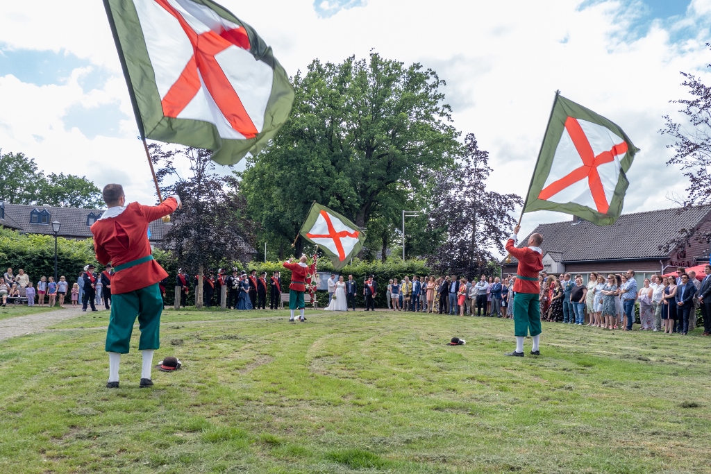 Op 11 juni 2022 zijn Ruud van Rijen en Jirka van de Pas getrouwd. Het gilde heeft op het kermis terrein een Vendelgroet voor het bruidspaar uitgevoerd. Zie onder foto's enkele beelden van deze vendelgroet.